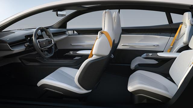 展现了Polestar极星品牌极简主义美学。车头部分,新车日间行车灯依旧延续了"雷神之锤"设计,但与Polestar 1和Polestar 2不同的是,新车头灯采用上下分体式设计。此外,新车前机舱盖上方还设有扰流板,官方称该空气动力学设计可降低风阻,并提升续航里程。
