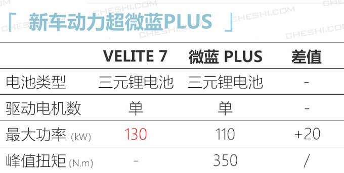 新车长宽高尺寸分别为4264×1767×1616(1618)mm,轴距为2675mm。其车身长度略短于自家小型SUV昂科拉,但2675mm的轴距相比紧凑型SUV昂科拉GX还要长。动力方面VELITE 7搭载一台来自LG的电动机,最大功率130kW,相比目前在售的唯一一款纯电动车型别克微蓝PLUS动力更强。搭载的电池组,依然是上汽通用自家生产的三元锂离子电池。