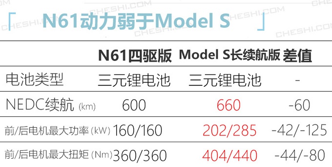 如果N61轿车的竞品锁定为特斯拉Model S的话,单从该车实际数据来看没有太多优势,预计N61上市后将在性价比层面寻求突破点。此外,新车预计将在今年年内发布。随着产品不断扩充,加上中国新能源汽车市场的巨大潜力,北汽新能源在新的十年未来可期。
