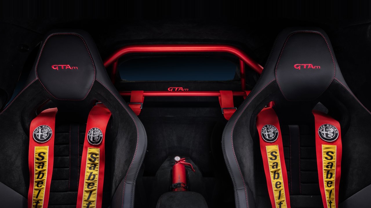 内饰方面,Giulia (配置|询价) GTA使用大量的Alcantara材质,而GTAm则更为激进。六点式安全带、尼龙内门把手、防滚架都是标配。