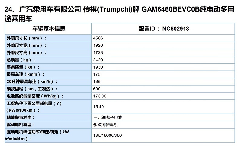 从申报信息来看,新车型将作为Aion V的长续航版本,搭载了一台最大功率为135kW的永磁同步电机,峰值扭矩为350N·m,最高车速可达175km/h。电池方面,新车将搭载一块能量密度为173Wh/kg的三元锂电池,百公里耗电量为15.4kWh/100km,其NEDC续航里程为600km。