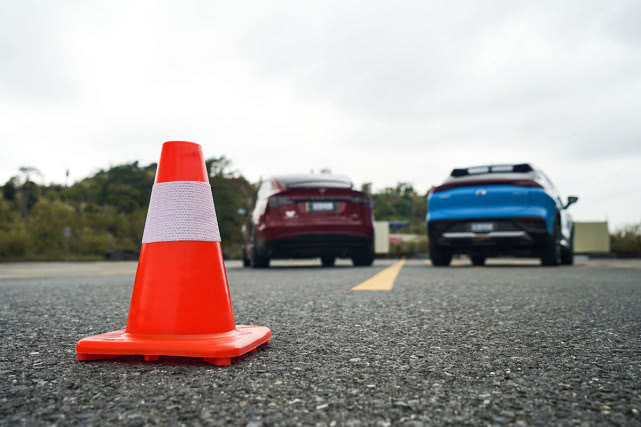 除了直线加速对比,我们在现场还布置了18米蛇形绕桩的测试项目,对比两车的操控性能。Model X P100D的前悬挂为双叉臂式独立悬挂,后悬挂为多连杆式独立悬挂。Aion LX 80D的前悬挂为麦弗逊式独立悬挂,后悬挂为多连杆式独立悬挂。从账面数据来看,同样是Model X P100D更具优势,但也并不代表已经胜利了。