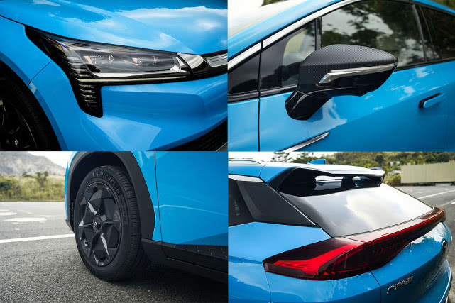 再看到轮毂部分,Model X采用了密辐熏黑的设计,造型依然是比较简洁的。而Aion LX采用的是风洞雕塑轮辋,可以说是集性能颜值于一身的设计。两车的后视镜外壳都采用了碳纤维的材质,而且门把手都采用了隐藏式的设计,进一步降低了车身侧面的风阻系数。此外,值得一提的是Aion LX的D柱也采用了碳纤维的饰板。