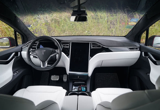两车的内饰同样是延续外观的设计理念,Model X的巨型中控屏几乎把所有车内的功能都集成其中,就连所有车门都要在中控屏中控制,从而实现极简的内饰风格。中控多处采用了真皮包覆,豪华感还算不错,但是缺乏细节的问题依然在内饰中出现,而且档把,方向盘按键,中央扶手区域的饰板都有较强的塑料感,给人的感觉完全达不到百万级的效果。