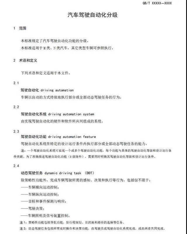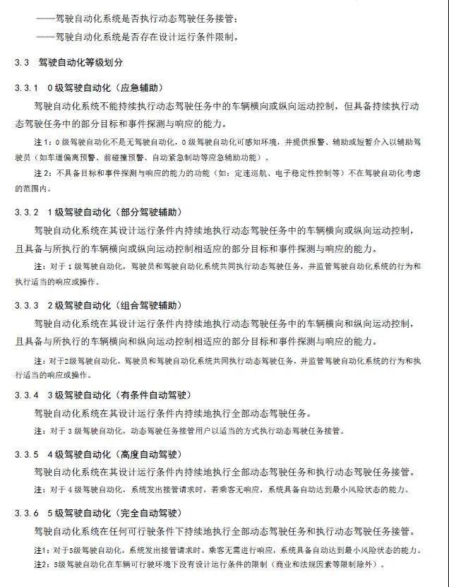 附《汽车驾驶自动化分级》推荐性国家标准报批稿全文: