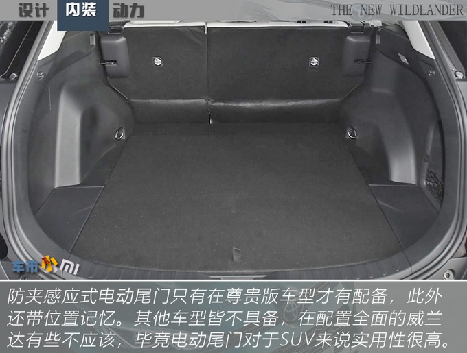 配置方面,除了入门的领先版车型有些裸装以外,再向上走的车型,配置提升都很大,如果你对车内配置的需求是够用就好,次低配的豪华型就能满足您。今天实拍的2.0L两驱科技型,在配置水平层面已经达到了很高的标准,全速段自适应巡航、全景天窗、并线辅助、主动刹车应有尽有,内饰中控的屏幕尺寸以及电子设备也达到了最高标准,就算您对配置有需求也不必买顶配车型,选这台就好。空间方面,威兰达在车长上比RAV4多出65mm,车宽以及轴距也都是保持一致,后备箱常规储物空间同为580L,细节之处,后备箱出口位置都是纯平的,并没有凹下去,所以在搬运货物的时候可以直接拿出来,这处的设计很细心,不过电动尾门仅在尊贵版车型上才有配备。