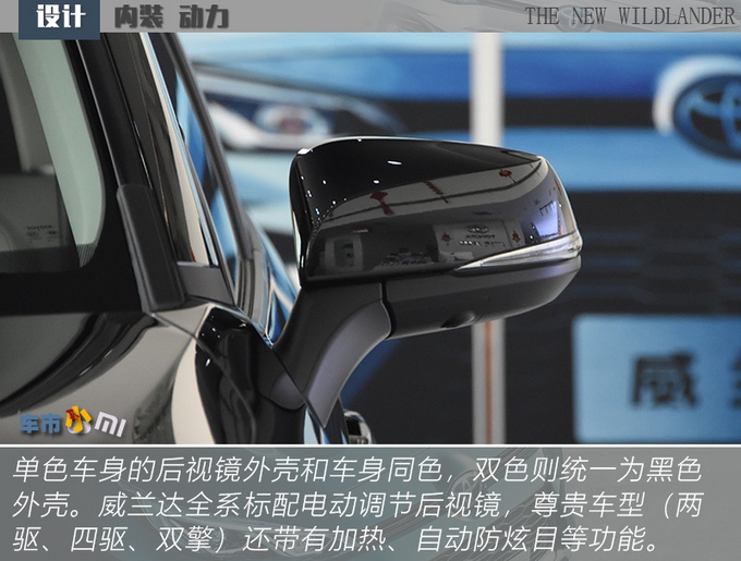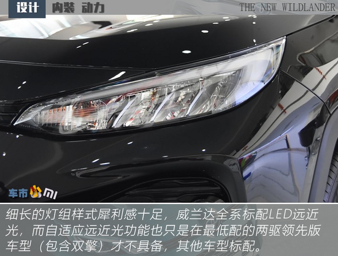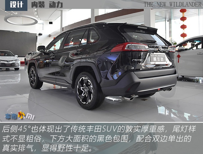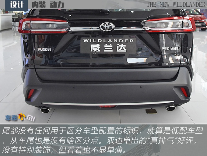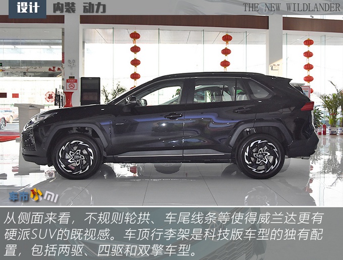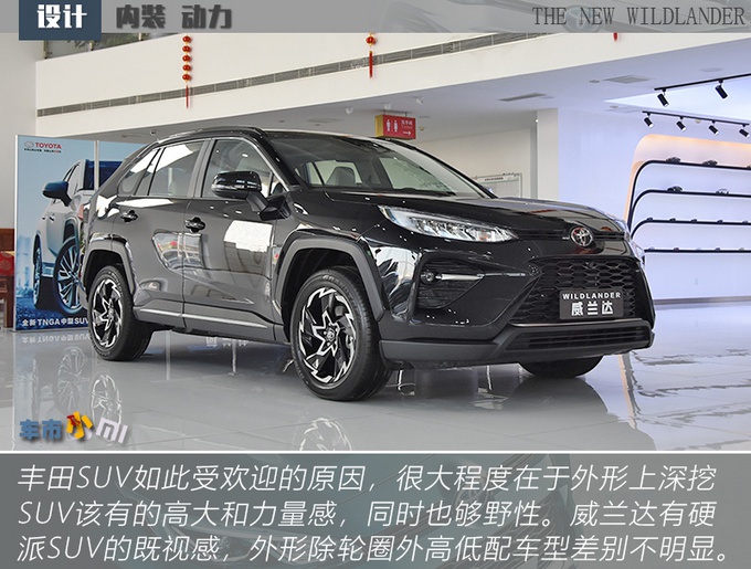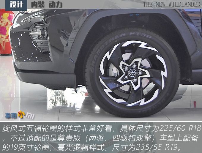 威兰达相比于RAV4荣放更贴合大多数人印象当中好看SUV该有的样子,前脸线条感足但是不另类,灯组、下格栅、轮圈、后包围都有棱有角,包括轮拱也是不规则样式但又不刻意,少了SUV的臃肿油腻感,更显精致。除了轮圈和行李架,你很难从外观上再发现威兰达高低配车型之间的差别,且18英寸旋风式五辐轮圈从造型上来说要比高配的19英寸轮圈更出彩,所以也不用纠结这个问题。