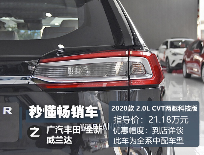 对比同级主流车型CR-V (配置|询价)、途岳、奇骏等竞争对手,威兰达17.18-24.18万元的价格区间虽然不占太大优势,但从自身来说,价格所对应的配置车型还是挺清晰合理的,有啥需求就有对应的配置车型供您挑选,用车场景没有四驱需求,要求配置能跟得上,且选择传统动力可以考虑这台2.0L CVT两驱科技版的实拍车型,百公里油耗5.9L,家用经济实惠。想买四驱以及双擎动力也有相对应的车型,选择灵活性很高,双擎车型的百公里油耗也会进一步下降到5L一下,无论家用还是商用,都比较合适。