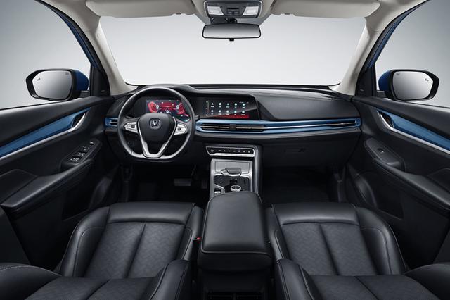 内饰方面,同样与长安CS55 PLUS (配置|询价)布局类似,而空调出风口和门把手处还采用了蓝色的装饰进行点缀。配置方面,新车搭载了10英寸全液晶仪表、10.25英寸中控液晶屏、自动空调、ACC自适应巡航、电子手刹和AI智能控制系统等配置。