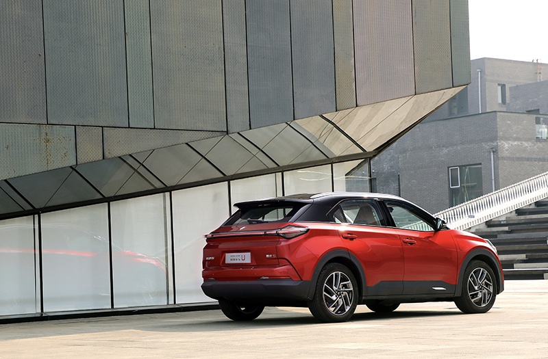 新车定位一款纯电动紧凑型SUV,车身长宽高分别为4530/1860/1628mm,轴距2770mm。整体的线条感较强,层次感分明,并具有不错的立体感。除此之外,像是双色车身、悬浮式车顶、贯穿尾灯等时下流行的时尚元素也都有出现在新车上。