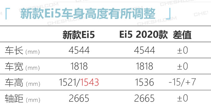 需要提到的是,在最新一期新能源目录中,新款Ei5更强动力版本已经曝光,该车采用的仍然是三元锂电池,但电池能量密度有所提升,达到170.1Wh/kg,工况条件下百公里耗电量为13.3kWh/100km,与现款车型基本保持一致。此外,该版本电机最大输出功率为135kW,峰值扭矩258N.m,动力性能相比现款车型提升明显。