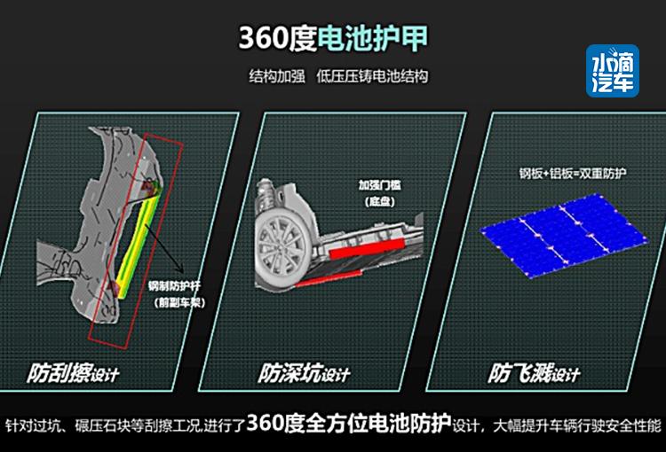 在安全防护层面,由于电动车的电池多被放置在底盘中部。为避免托底、侧碰等意外状况,元EV通过采用高强度铝合金外壳,让电芯更加坚固,能够抵御外力侵袭。名爵EZS的电池组外壳采用一体冲压航空铝合金材质打造,特别针对E-NCAP侧面柱碰加强防护,并对石块飞溅、刮擦等等状况对电池组起到更安全的保护作用。