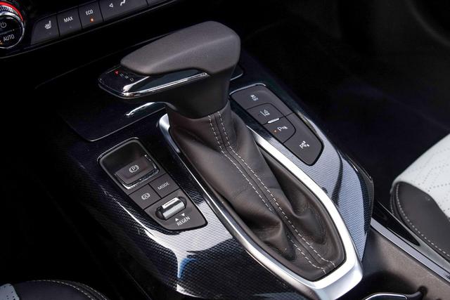 挡杆采用了传统样式,驾驶模式切换和蔚蓝上的有所区别,旋钮式换成了按键式。自动驻车、动能回收力度调节、电子手刹等功能分列挡把两侧。