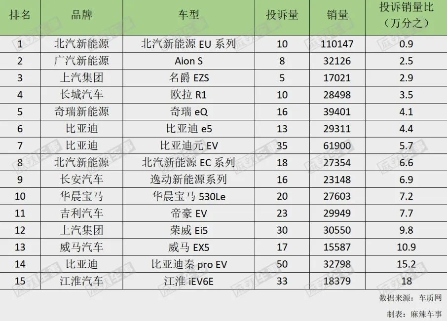 近日,“2019年度国内新能源汽车投诉销量比排行榜”发布,BEIJING-EU系列凭借万分之0.9的最低投诉销量比,在含合资车的众多车型中脱颖而出,夺得年度质量冠军。这也是张宏宇能够对BEIJING-EU5打出高分评价的原因。