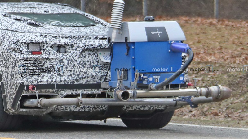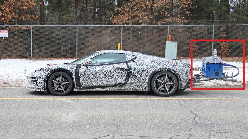 日前,我们从外媒获取到了一组疑似全新科尔维特 C8混动版车型的测试谍照,谍照中的新车被一层严密的伪装包裹,但其整体造型与科尔维特C8十分相似,在新车的后侧还悬挂了一台非常显眼的设备,我们推测其为新车测试排放和油耗所用的仪器。