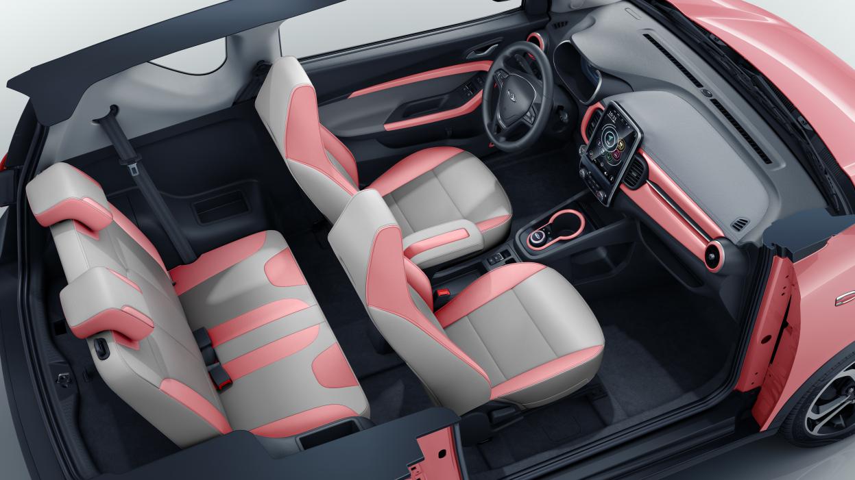 内饰方面,小蚂蚁女王版将采用了粉米色内饰,营造浪漫优雅的氛围。前排位置配置有中央扶手,保证用户驾驶从容;中控台软触材质以及一体化的女王专属高级皮质座椅,乘坐体验更好。此外,小蚂蚁女王版搭载智能空调,具有自清洁/自通风功能,同时采用PTC加热技术可以有效灭毒杀菌,时刻保证车内空气清新洁净,保护驾乘者安心出行。