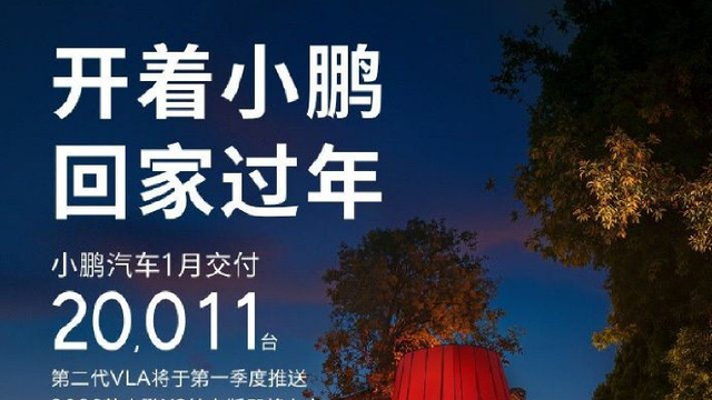 小鹏汽车2026年1月交付新车20011台