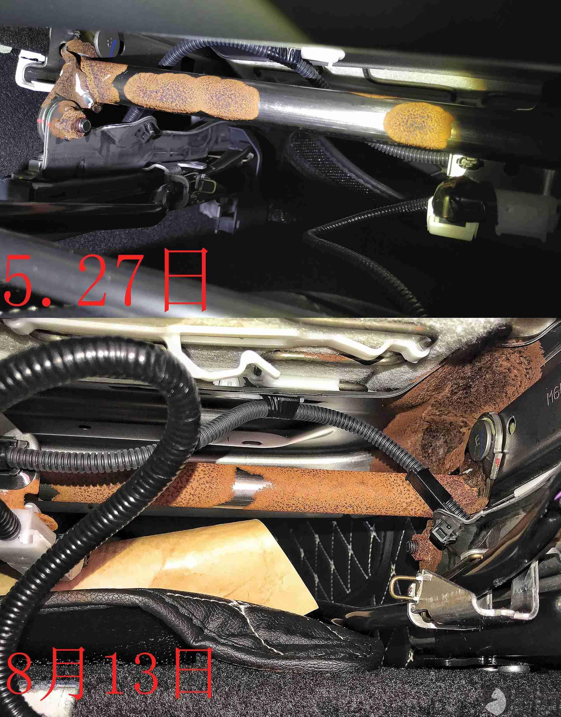 本人在2018年5月19日阳江某丰田4s店提了部卡罗拉双擎,第二天自己装脚垫的时候发现转向柱大面积生锈,于是将车开到4s店要求解决问题!在此期间我委托第三方检测检测了车辆检测结果如下:1.车辆的左右中控支架锈蚀,存在中控台坍塌风险。2刹车踏板合页锈蚀.支架锈蚀,方向机管柱锈蚀。3副驾驶安全气囊高压包存在大量面积锈蚀,影响气囊正常爆出。4座椅骨架锈蚀。5安全带存在水迹。于是本人找那边协商要求更换新车!4s店一直没有处理,最后给出的方案就是大面积更换锈蚀部件以及锈蚀部件除锈(就是买一辆拆换过大量零件的汽车)。本人不接受这个提议,多次协商4s店还是不能满足换车的要求,对此事的发生已经打乱了自己正常的生活工作,每天沉浸在此事当中。周围的朋友都说我买到了水泡车,我对汽车又不懂。4s店的处理真是让人心寒!之后到今天又去看了车辆情况锈蚀蔓延严重!