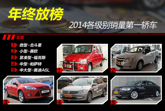 | 2014年度各级别销量第一轿车车型 | ||||||