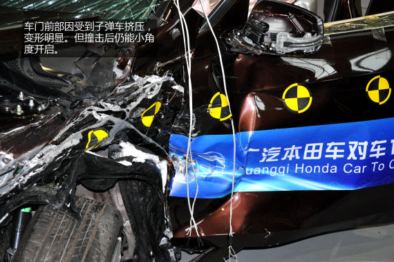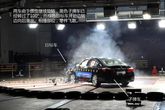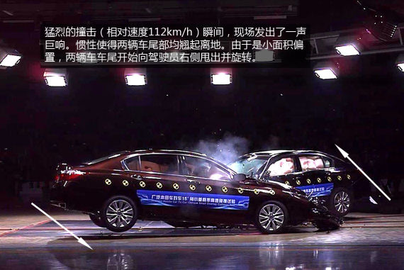 这是两辆雅阁对撞的瞬间,截取自高速摄影机。下面,编辑为大家从各方位描述这次碰撞过程。