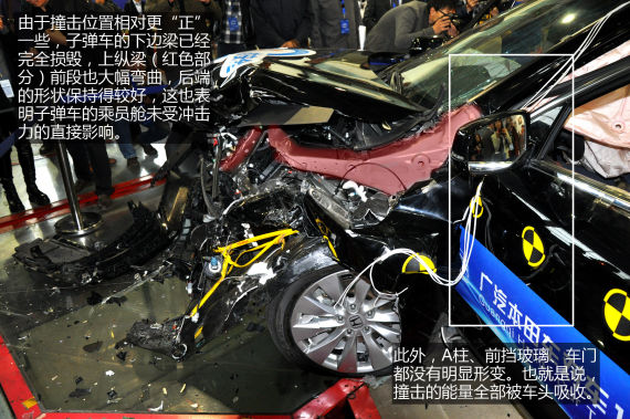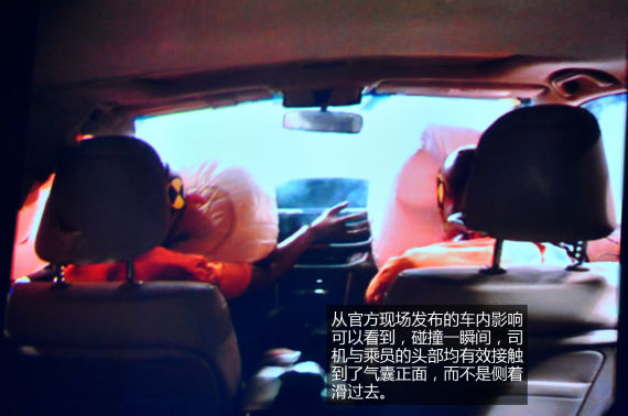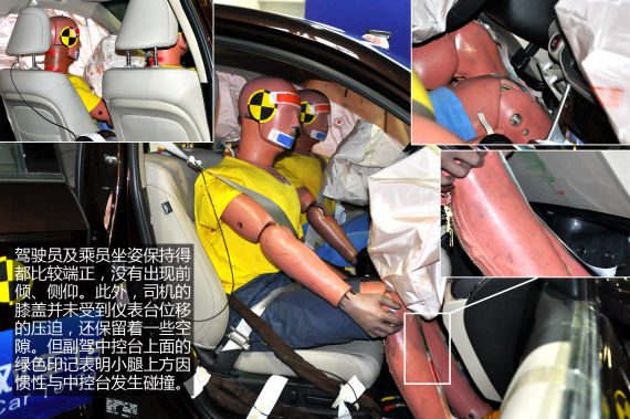 这是官方现场公布的碰撞结果。假人主要部位的伤害值均低于基准值,但数据是枯燥的,通过上面的照片和分析,相比童鞋们已经有了一个更直观的感受。