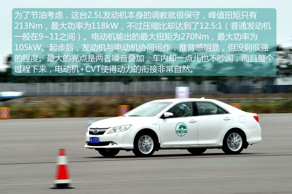 按我们理解的常识,混动车型为了照顾到经济性,往往在动力方面会有所牺牲。实则不尽然,丰田为我们准备了凯美瑞·尊瑞(HEV)车型进行百公里加速测试。尊瑞版采用油电混合动力系统,2.5L自然吸气发动机匹配CVT变速器,外加电池/电机,整备质量达到1605kg,相比2.5L传统动力车型重了100kg。测试时,车上乘坐两人(含司机),我跑出的成绩是8.85秒,比2.5L传统动力车型还快出1秒左右。