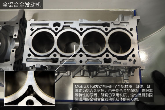 新浪汽车讯 2015年1月9日,上汽MG在上海自贸区临港基地发动机厂举办了一场2.0TGI发动机解析活动。众所周知,MG品牌即将推出一款高性能SUV——MG GS,而这台MGE 2.0T发动机成为了这款SUV的产品核心竞争力。从账面数据来看,162kW的最大功率,350Nm的峰值扭矩,在自主发动机中毫无疑问是最强悍的,即便放到合资车型发动机中也是能排上前几名的。官方宣称,MG GS的百公里加速成绩达到了8秒。闲话少叙,下面编辑就从参数对比和结构技术两方面,为大家解析这台高性能2.0TGI发动机。