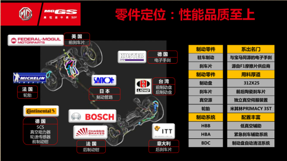 这是讲解会一开始官方给出的锐腾与几款主流SUV的刹车成绩对比。对于一般SUV来说,40米内的刹车距离就可以算是不错的了,不过锐腾做到了38米内,最好成绩甚至达到了36.29米。不禁让人好奇,锐腾究竟用了什么可以让其超过1.4吨的车身拥有这么靠前的刹车成绩呢。上汽制动部门主任工程师方恩给出了我们答案,那就是不惜成本,真材实料。