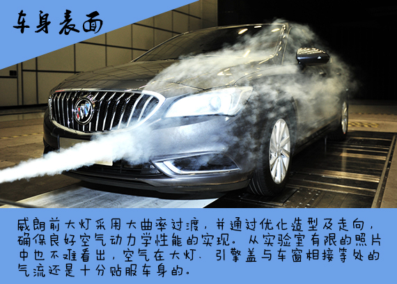如果再细分的话,车辆空气阻力的来源可以分为四个方面:车身表面、发动机舱、底盘和空气流过车尾形成的涡流拖力。一般只有超跑的底盘才会进行成本极高的封闭导流面设计,因此车身、发动机舱和细节优化就成了威朗设计的重中之重。