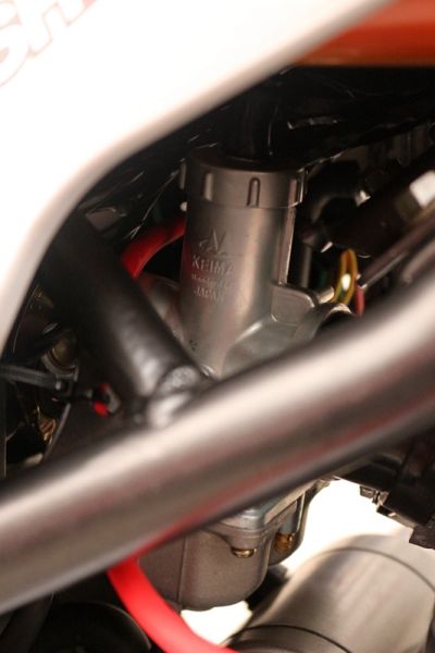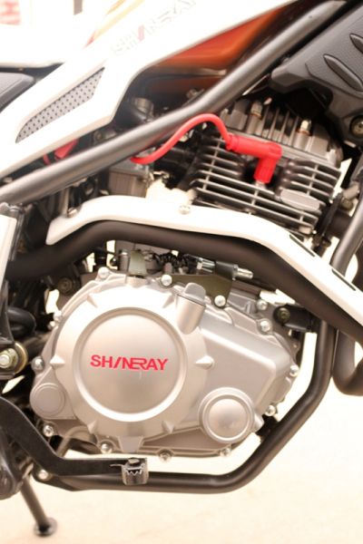 鑫源魔术师搭载一台250cc(实际223cc)风冷SOHC两气门单缸引擎,活塞直径和行程为:65.5*66.2mm,压缩比:9.2:1,峰值功率12kw/8000转,最大扭矩17N.m/6500转。六档变速箱并配置了内置式平衡轴。此款发动机虽较Tricker XG引擎性能稍逊,但是匹配在仅仅109公斤的车体上,动力性还是绰绰有余的,急加油有明显的拉扯感。鑫源魔术师没有采用电喷供油系统,依旧是传统化油器供油方式,原厂配置三十毫米口径的KEIMA柱塞式化油器口径,在试驾中笔者还是微微感觉到这款化油器在供油效能上存在缺陷。另一个不足就是换挡感有些卡涩,不够顺滑,也有可能是新车未经过磨合的缘故。空挡倒是比较容易切入的,不会让你有原地数次甚至十余次挂空挡而不入,气急攻心的窘态。