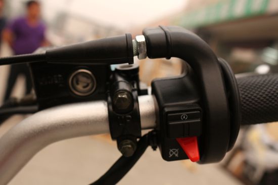 鑫源魔术师采用较高端的铝合金变径车把,提升操控感又兼备了牢固性,遗憾的是变径把上没有角度调节标示刻度。右侧开关总成沿用了越野车一贯的按键位置风格,但是左侧开关总成的一个功能设置,不免让人产生质疑,大灯开关居然被置于常规阻风门的位置,而且外形很类似,不免会让第一次接触鑫源魔术师的骑手出现误操作。本车的阻风门开合机构为传统压杆式,并没有采用拉线式阻风门。鑫源魔术师仪表与XG基本一致,同样没有转速显示,但是设置了档显。魔术师配有边撑熄火功能。
