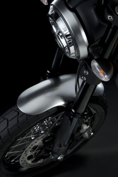 配置41mmKYB的倒置式前避震,中置式后避震辅以前后盘式制动设计。前后轮皆搭配ABS防抱死系统,330mm浮动盘搭配Brembo辐射式对向四活塞卡钳的前制动系统,后制动系统由245mm浮动碟盘与单活塞卡钳组成。休闲娱乐、日常通勤使用的SCRAMBLER,就配置而言安全性与制动性是有绝对保障的。