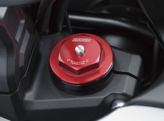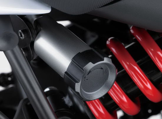 后减震可自行调整阻尼,让车辆适应不同的装载设定。比如:单人或双人模式,挂边箱与不挂边箱设置,以对应不同的装载情况。让车辆的操控性在任何状态都达到完美。