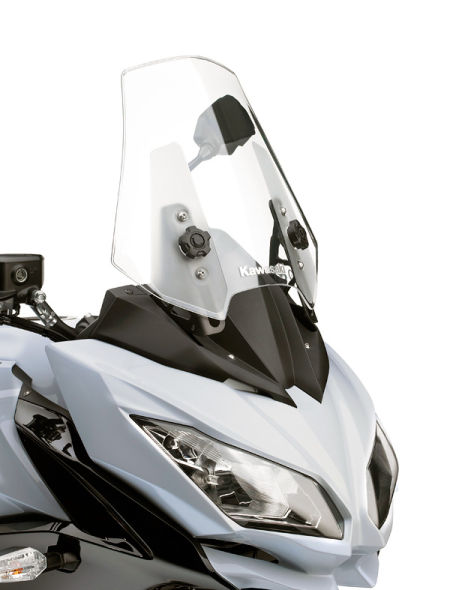 加大的可调挡风玻璃有助于降低风噪和对人体的伤害,在风挡后面,骑行者可以享受一个宁静的高速骑行。风挡较之前增加了1.7倍。其可调的范围是60毫米,适合更多不同的车手的体型。同时风挡的调节也非常简便。