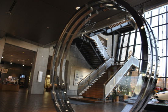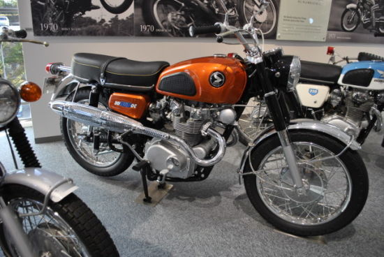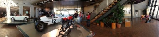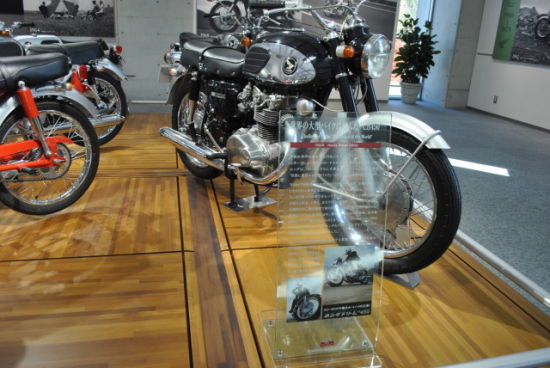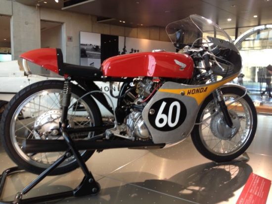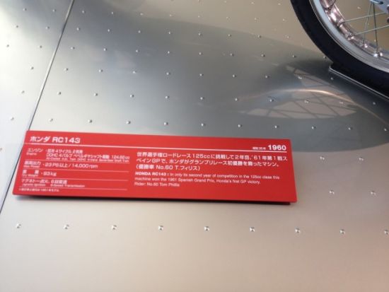 “活塞环”后面、大厅中央是本田早期的职业赛车RC143,1961年本田RC143击败称霸世界摩坛已久的MV Agusta,获得赛事胜利。
