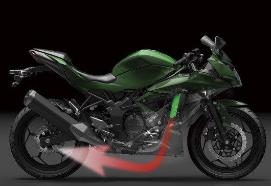 忍者250SL运用了一个全新的钢管编织车架。目的是为了实现车辆“窄、重量轻、结构紧凑”的目标,框架结构的车架有助于减轻车体重量,增加骑士骑行的操控性。同时车身强度的增加,在弯道行驶时能够拥有更好的弯道体验。