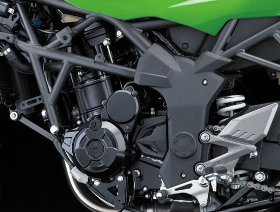 单缸发动机在高转速区域一直存在有弊端。而川崎在设计这款发动机时优化了这个特点。让其保持了单缸机的优点:低转速就有很好的动力爆发。然而在高转速的时候没有了高频振动和动力衰减的现象。