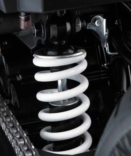 Uni-Trak的后悬挂能够充分的吸收来自地面的震动,同时也增加了后轮对地面的附着力,促进车辆的运动操控。5个可调档段,允许车手调整后车身高度,以及设立车辆载人或者背负行李的状态。