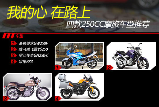 适合公路摩旅的四款国产250cc摩托车新浪大培子推荐排序:豪爵GW250F>雅马哈飞致250>宗申RX3>望江传奇250。