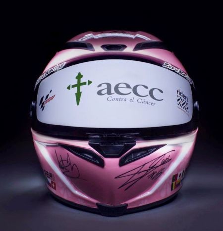 把这么多超级大腕的名号顶在头上确实“很有分量”,这顶头盔单凭这许多签名就卖出如此高的天价着实很难理解。其实这顶头盔还蕴含着更重大的意义,它主要是响应西班牙癌症协会(AECC)发起的抗癌活动,这也是情理之中的事情,谁让MotoGP被西班牙车手所垄断呢。这顶头盔在最近的一次拍卖会上拍出了31万美元的天价,这恐怕是历史上最贵的头盔了(2012年萨巴斯蒂安.维特尔的头盔以12.3万美元售出),所得款项将全数交由相关基金会资助抗癌计划。
