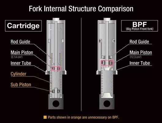 由于活塞面积差不多比传统设计大了一倍,所以降低油压但同时可以维持相同的缓冲衰减,从急刹到入弯都有压倒性的稳定感。