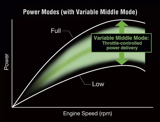 运动-川崎牵引力控制系统,通过川崎独有的逻辑运算,对车辆行使数据进行准确的综合性分析,评估后轮打滑的概率以作修正并使后轮获得最大的牵引力。还配有三档动力模式,F(全功率)M(智能可变功率)L(相当于60%的F模式),即便是雨天,这套完善的控制系统依然可以保证您的安全骑行。