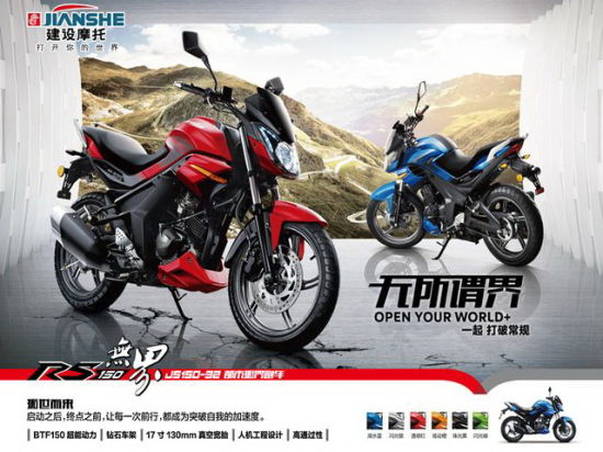 建设无界RS150-32是2014年推出的一款入门级小排量街跑,无界的整体外形采用仿生学设计,呈现优美而饱满的S曲线(厂家告知为意大利设计室设计),整体舒展、线条流畅是款具有浓郁时尚气息的动感车型。车身架构脱胎于著名的“街行小钢炮”:雅马哈FZ-16(FZ-S),搭载BTF单缸150cc发动机,而这台发动机拥有雅马哈YB血统。 时尚大气的造型设计,充沛、稳定且线性的动力,舒适、平稳的驾乘感受,让JS150-32无界成为一款适合不同人群和用途的个性化街跑。(建设无界JS150-32可以理解为建设王J150-31的入门版本)