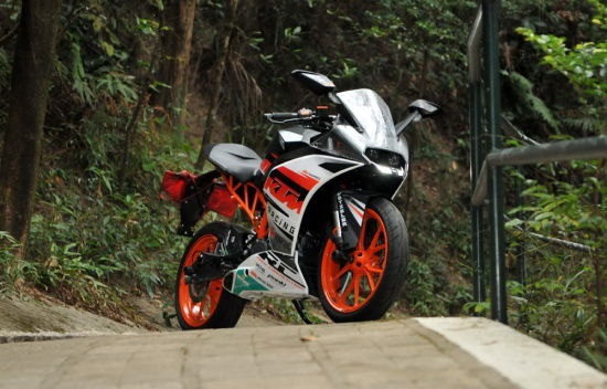 RC390前轮装有径向式4活塞卡钳,制动力线性好,手感足。ABS的规格是Bosch 9MB系统,是最先进的ABS系统之一。缺点?当然有。RC390的油缸容量只有10.5升,长期高转快跑,续航距不会超过180km。车主出游,一定要知道沿途加油站在那。引擎的震动感觉也比其他对手强,因为排气量大,也是单缸设计,没有办法。此外,座垫又薄又硬,设计原意是方便阁下外挂压弯,而不适合长时间跑直路。