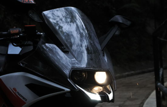 横向伸展的后镜,视野良好。中央橙色表板非常好用,显示资料既详尽又清晰,引擎温度和燃油量都放在显眼位置。但改装后的牛角,会夹手指,不及原装好用。头尾LED灯组独特易认。尤其是车头一对双鱼眼投射灯,灯组底部配上LED白光位置灯,性格十足。连带左右手柄上的功能快按钮都有背景灯光,汽车级的规格相当方便。