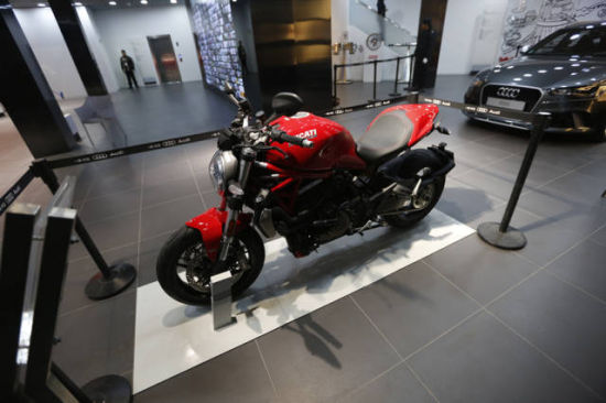 此次在奥迪北京运动车体验中心展示的Monster 魔鬼1200 为杜卡迪品牌下最为夺人眼球的车型之一,也是Monster 怪兽这一杜卡迪最具代表性车型的第三代产品。今年12月12日,杜卡迪在米兰的奥迪城市展厅交付的博洛尼亚工厂生产的第100万辆摩托车,也是 Monster 1200系列车型,当时杜卡迪的执行总裁 Claudio Domenicali 先生与奥迪集团执行总裁RupertStadler教授以及奥迪股份公司市场销售部门董事Luca De Meo 先生共同莅临交付仪式,见证这意义非凡的时刻。