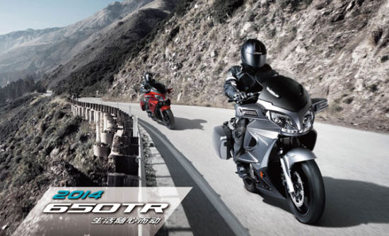2014款春风650TR造型前卫动感,低调中尽显霸气。蕴涵澎湃动力,高速巡航不惧阻力,堪称多功能旅行车首选佳作。发动机采用了低转大扭矩的动力设定,发动机稳定可靠。采用国际品牌马牌轮胎,抓地性能优异,制动距离短。西班牙西互制动体系,四活塞对置卡钳的,大尺寸浮动刹车碟,操控驾驶起来更随意、更安全。加高风挡,角度重新调校,高速巡航阻力明显减轻,驾驶起来更轻松。650TR专门设置了12V直流充电插口,更方便的外接电子设备。配备了容积达33L*2的大容量边箱,可容纳两个全盔(?)。加高铝合金手把,不易疲劳,更舒适。140mm的最小离地间隙,从容应对各种路况,通过性更佳。了相对较高的整车重心,车身对于人体的支撑达到最佳比例,操控感更灵活。