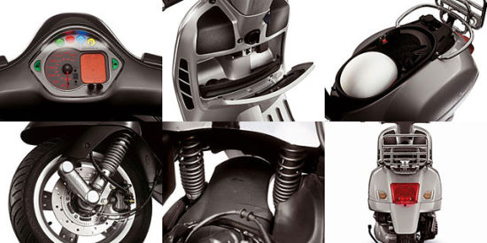 在细节上,GTS 250更加体现出意大利的风情与创意,镀铬反光镜、标志以及一些小装饰件,使人想起Vespa起源时的复古情调。而现代元素也没有被遗忘,例如时尚仪表盘,发动机状态指示灯、机油指示灯等,让骑士一目了然。全新设计的后座脚踏,也让人有种眼前一亮的感觉。