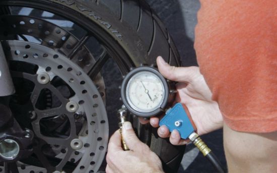 9.轮胎应保持正常的胎压(参考摩托车使用手册或轮胎侧面标识数值)和使用性能,胎压不足将导致油耗加大;胎压过高则会降低轮胎抓地力,且有爆胎的可能性;老化、开裂及过度磨损的轮胎及时更换。