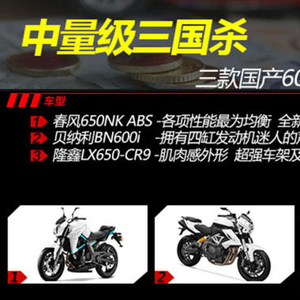 春风650NK-中国首款大排量街车,至今历经了两次升级:2014对轮胎、制动系统和仪表等进行了配置性升级;2015全新升级ABS,加之强劲的动力和灵敏的操控能力,更有完美的车身比例和蓄势待发的战斗驾驶姿态,安全稳定之余尽享骑乘乐趣。